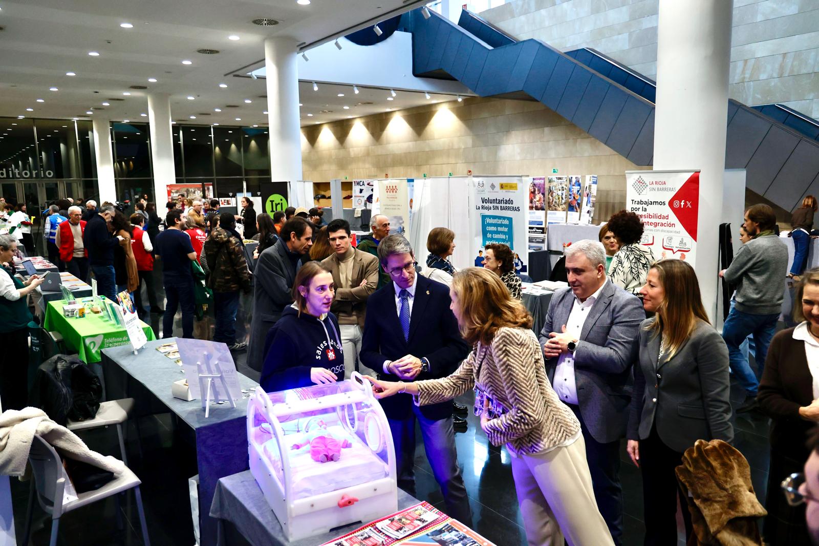 La Federación Riojana de Voluntariado Social (FRVS) celebra hoy, en Riojaforum, la Feria de Asociaciones de la I Semana del Voluntariado. En este acto, enmarcado en el 30º aniversario de la entidad, participan más de una treintena de entidades y agentes sociales. La inauguración ha tenido lugar a las 9:30 h y ha contado con la presencia del presidente del Gobierno de La Rioja, Gonzalo Capellán; la consejera de Salud y Políticas Sociales, María Martín; y el presidente de la FRVS, Jorge Ruiz. Además, han asistido miembros de la Mesa del Voluntariado, como la directora general de Servicios Sociales e Instituto de Igualdad, Marta Gómez; el director general de Innovación Educativa, Fabián Martín; el subdirector general del Instituto Riojano de la Juventud, Juan Diego Alcaide; y representantes de la Universidad de La Rioja (UR), la Universidad Internacional de La Rioja (UNIR) y la Federación de Empresas de La Rioja (FER).