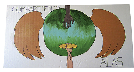 Dos alas dan lugar a una situación voluntaria, “dar” y “recibir”, reflejando valores culturales, étnicos y de cooperación hacia los demás.